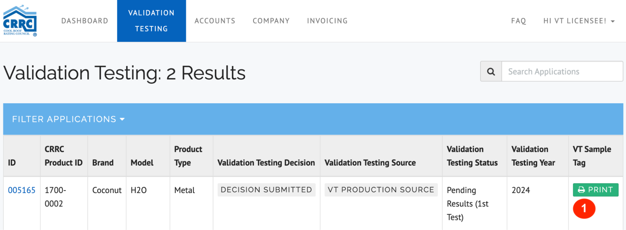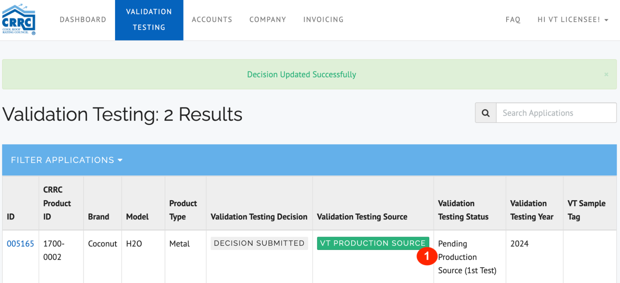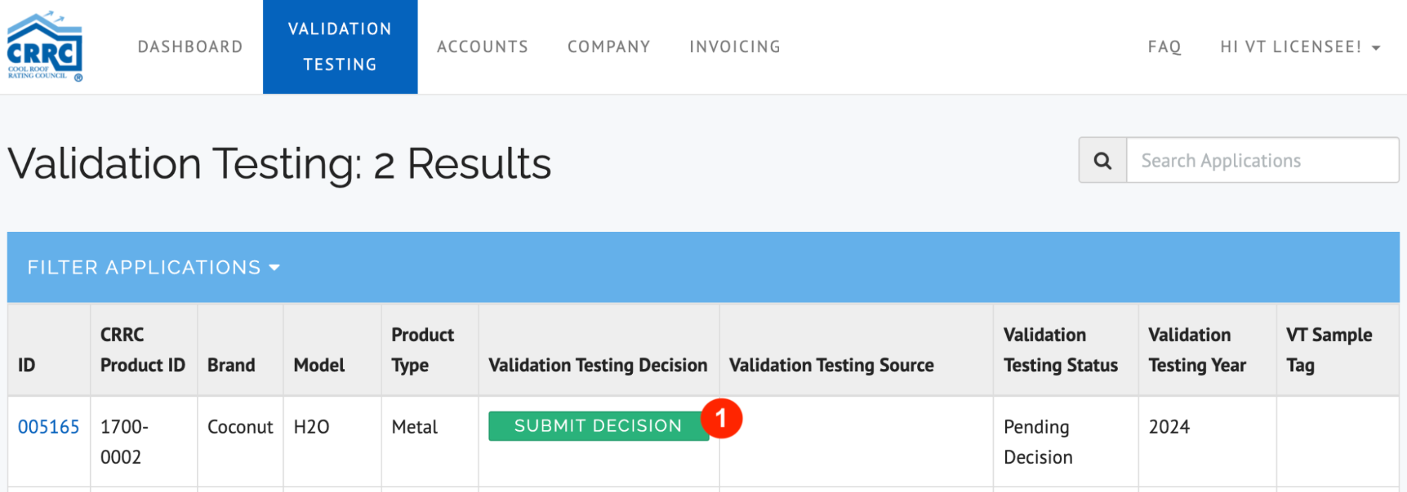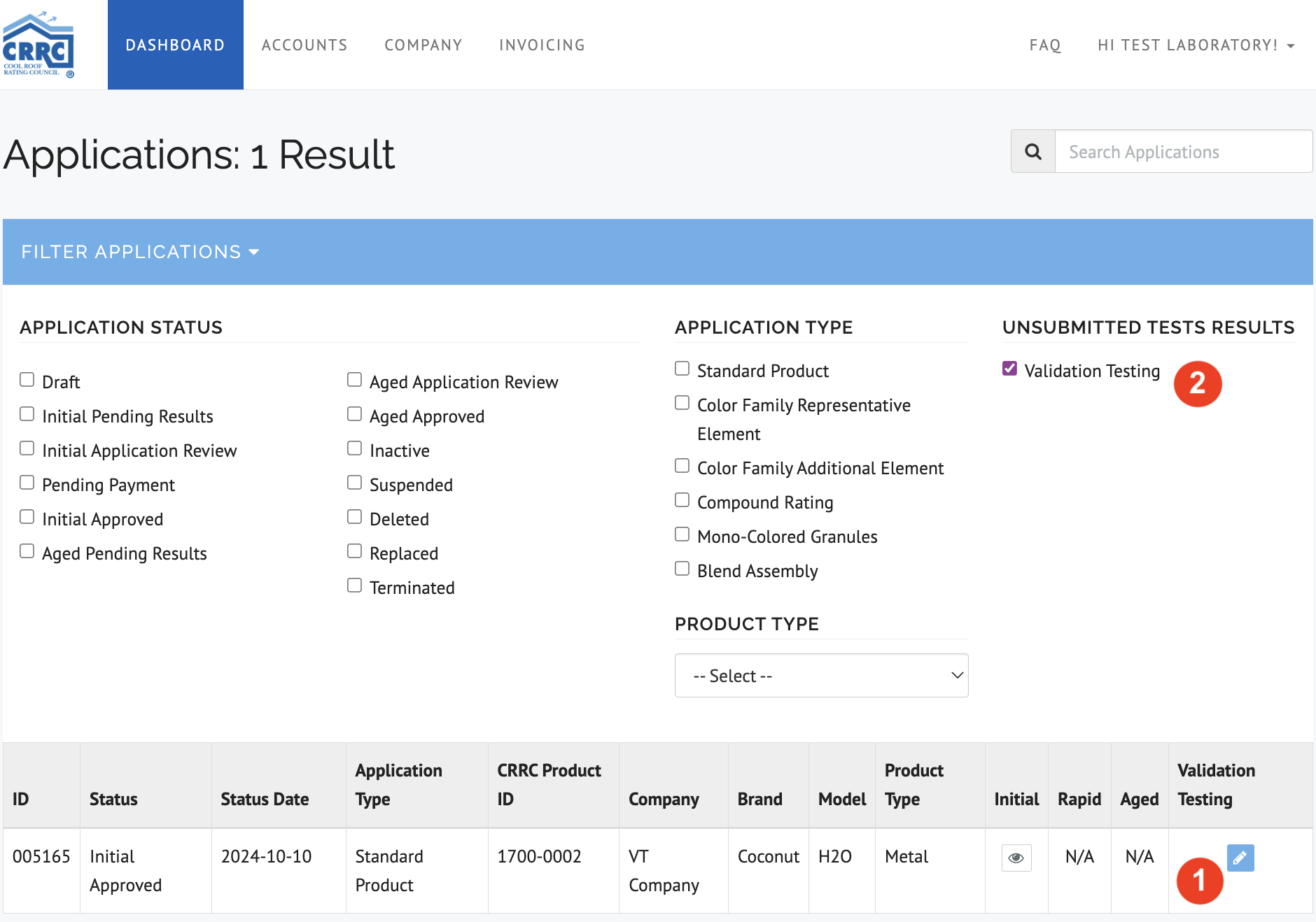 With the adoption of the CRRC Validation Testing Program as CRRC’s Roof Program quality assurance mechanism, all decisions and actions related to Validation Testing are integrated into the Portal to streamline the process and make it easier for Licensees, Test Labs, and CRRC Staff to submit and view decisions and test data for Validation Testing.