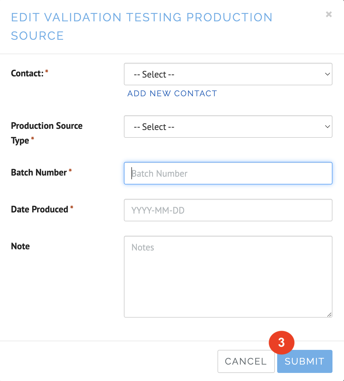 - Contact - Select a Validation Testing Contact. This person will receive Portal email notifications regarding this Validation Test.